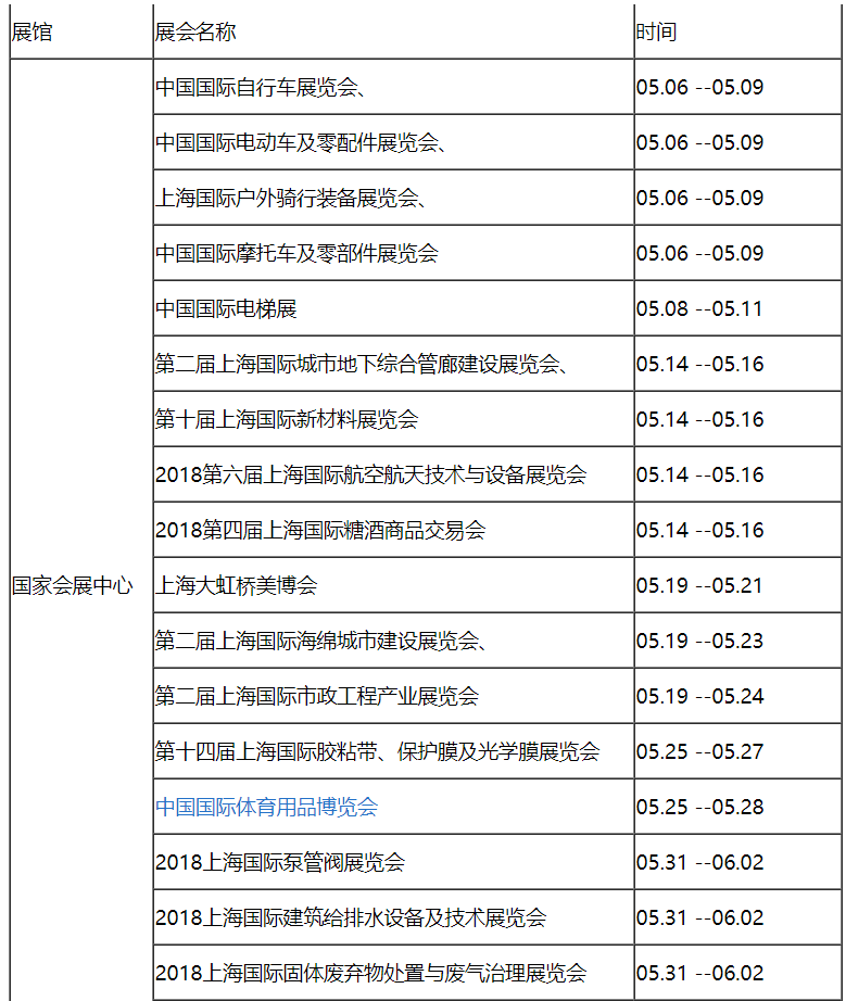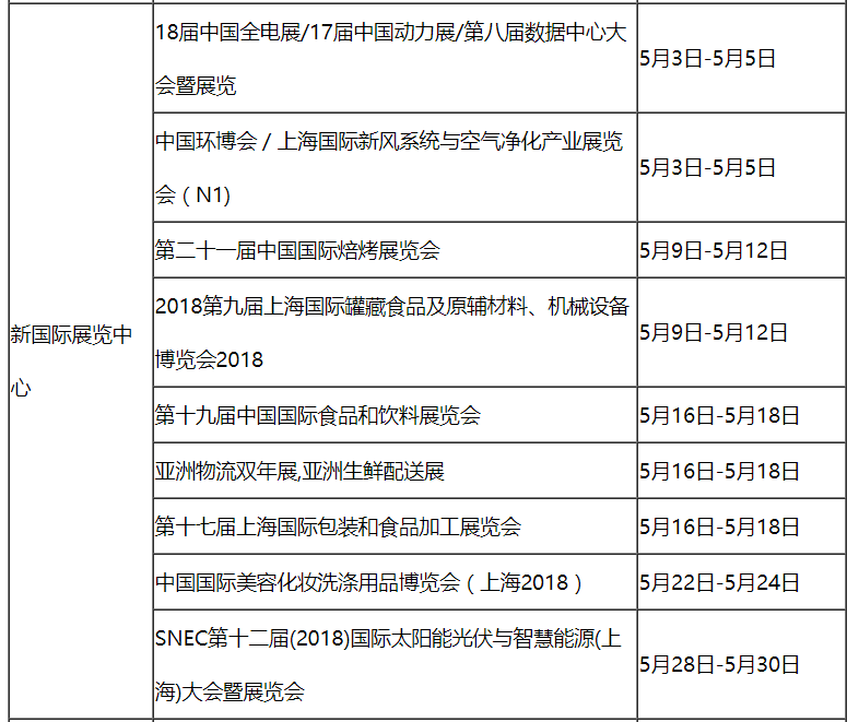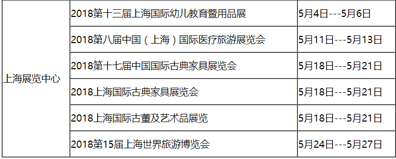 下面為您介紹2018年5月上海展會(huì)排期。