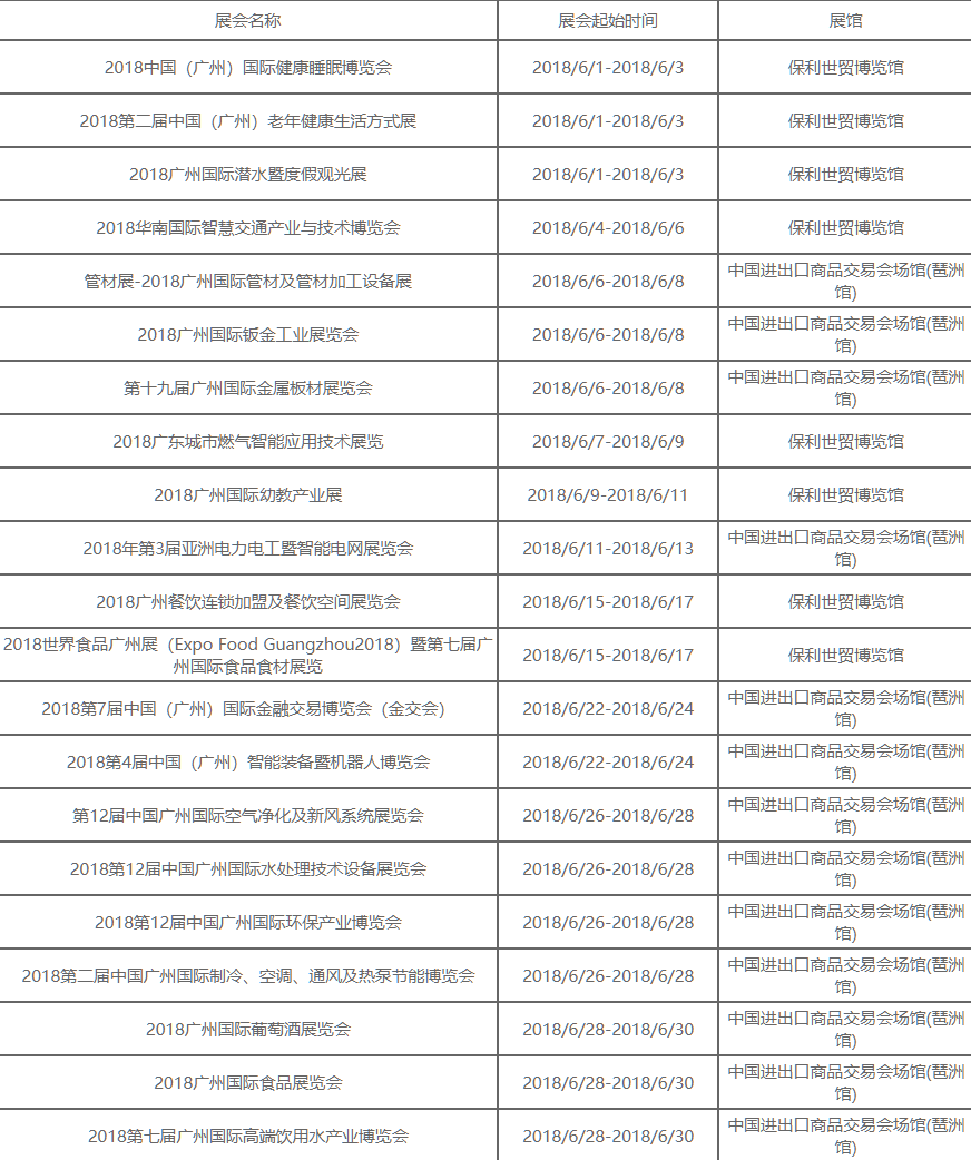 下面為您介紹2018年6月廣州展會排期。