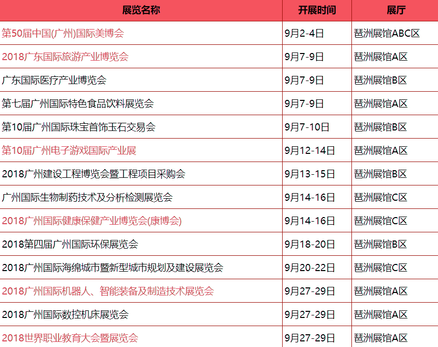 下面為您介紹2018年9月廣州展會排期。